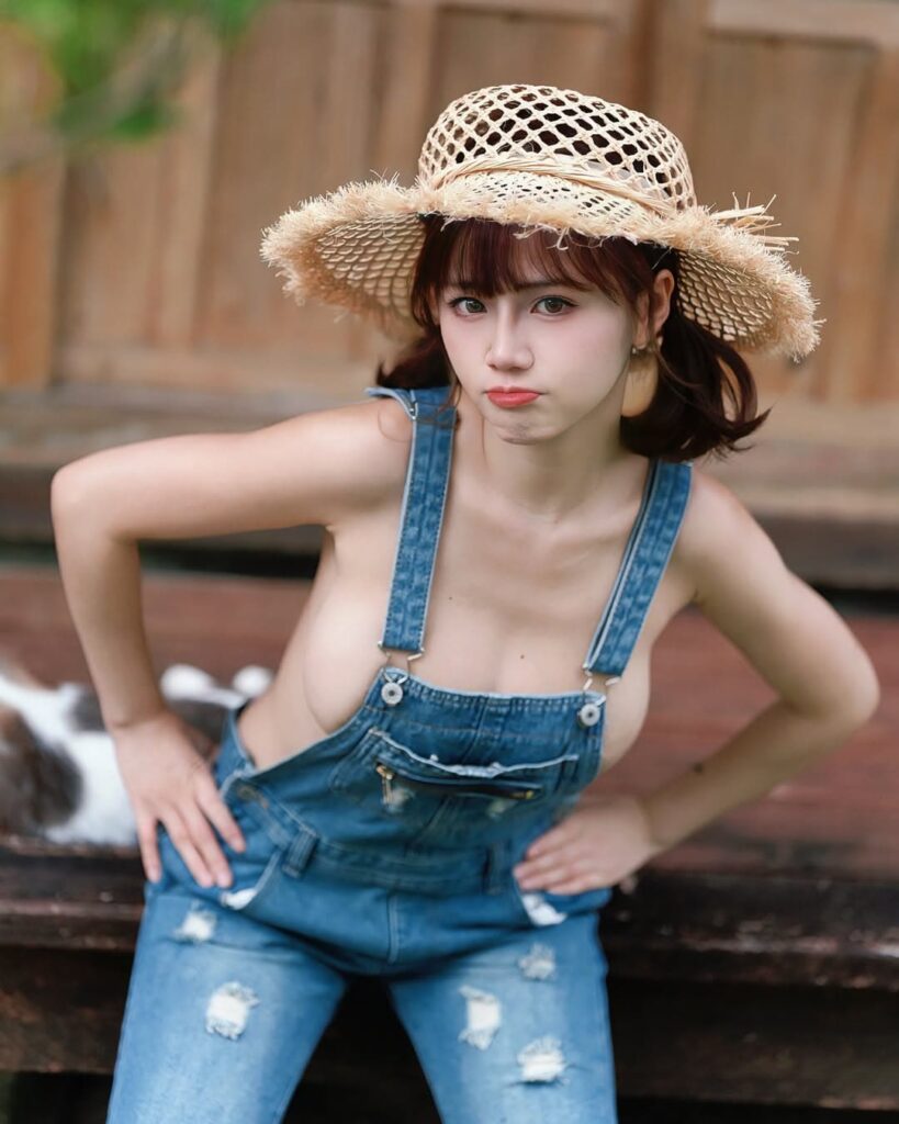 What does it look like when your girlfriend is throwing a tantrum? Whether you’re a pure-hearted magician or a seasoned driver eager to get things going, you can’t miss this incredibly hot beauty, “HANHAN”! Underneath her straw hat, her cute little face pouts and she puts her hands on her hips, thrusting forward to reveal her most outrageous asset – nothing but a pair of overflowing breasts under the jumpsuit, a visual impact that hits you right in the heart!